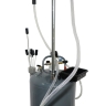 Установка KRAFTWELL, модель KRW1832.80L предназначена для сбора масла, антифриза и других технических жидкостей методом слива самотеком, а также откачкой через щупы. Высота приемной ванны регулируется позволяя точно подобрать удобное положение при работе, а также защитить от разбрызгивания масла. У основания приемной ванны расположен шаровый кран, перекрывающий слив жидкости в основную емкость до контроля ее состояния. Процедура откачки технических жидкостей через щупы основана на принципе вакуумирования, при котором создается разряжение и жидкость засасывается в емкость, и используется в тех случаях, когда слив невозможен. В комплекте с установкой поставляется набор из 6 щупов различной длины и материала. Индикатор уровня, расположенный на емкости, показывает ее наполненность и вовремя сигнализирует о необходимости опустошения. Для слива жидкости из установки необходимо подключить сжатый воздух к штуцеру, расположенному в верхней части емкости. Под давлением вся жидкость выливается через гибкий шланг с жестким наконечником в емкость большего объема и затем утилизируется. Давление воздуха контролируется по манометру. Для безопасности на корпусе установлен клапан избыточного давления, который предохраняет стенки от деформации и разрушения.